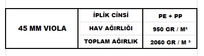 - İPLİK YAPISI: 100 %Polietilen(PE)